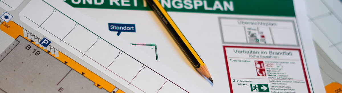 Die Aufstellung von Flucht- und Rettungsplänen für Arbeitsstätten gemäß der ArbStättV §4, sowie ASR A1.3, A2.2 und A2.3 verpflichtend.